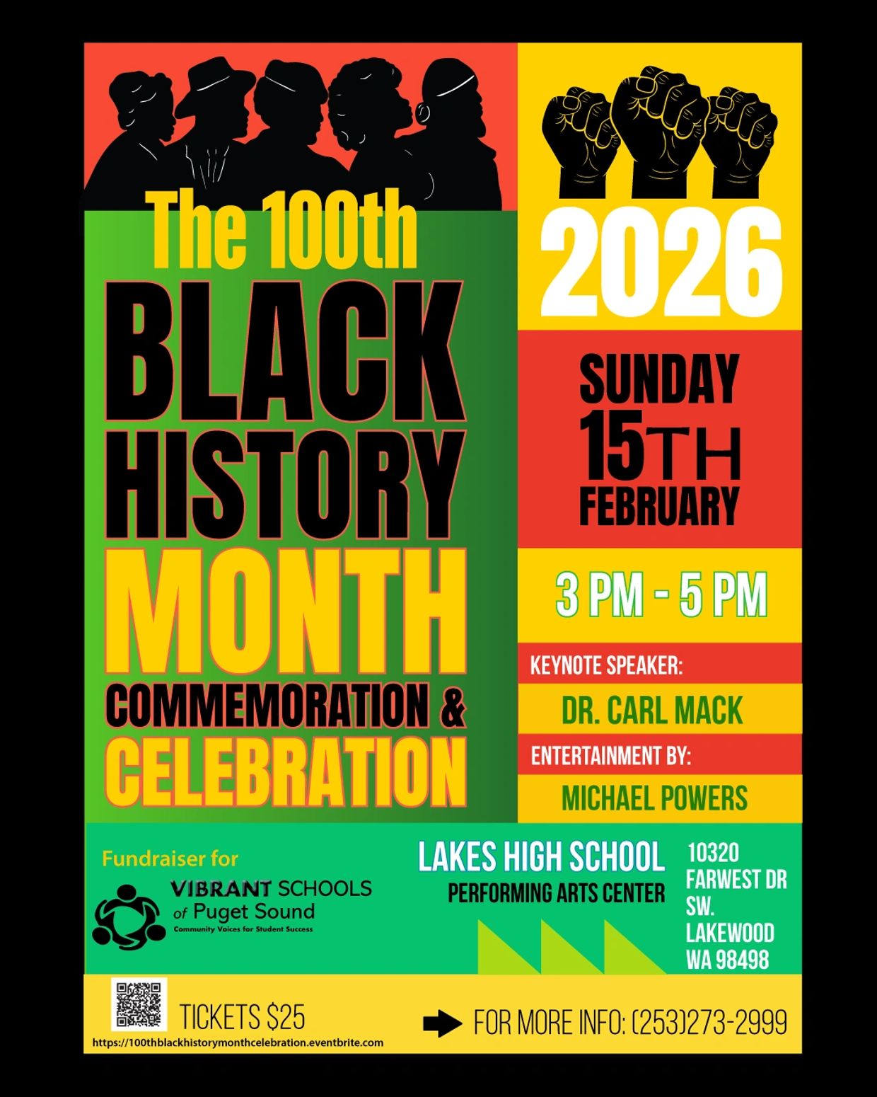 To honor Dr. Woodson's legacy and preserve Black History observances, Vibrant Schools of Puget Sound along with Black Student Union (BSU) students at Lakes High School are presenting an exciting centennial celebration on Sunday, February 15th 3-5 pm. Details are listed on the attached flyer.